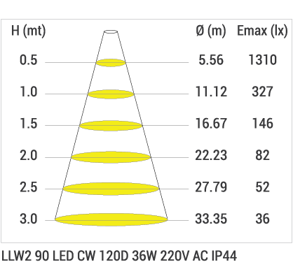 | LLW2 90LED | WW-NW-CW | 24V DC | 36 | 1350 | 1,6 |