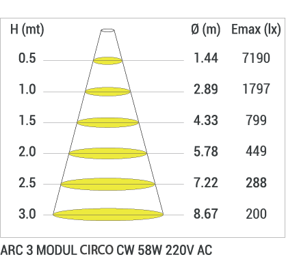 | ARC CIRCO | WW-NW-CW | 220-240V AC | 60 | 5.000 | 4,8 |
